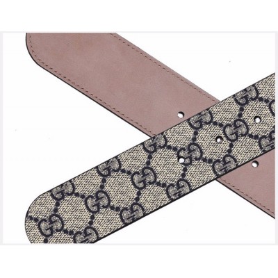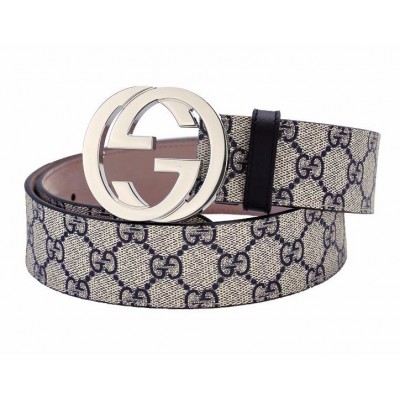 【情人节礼物】GUCCI/古驰 男士银色双G头互扣式腰带人造革蓝色印花皮带 411924-KGDHN-4075